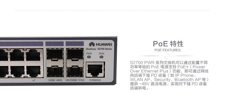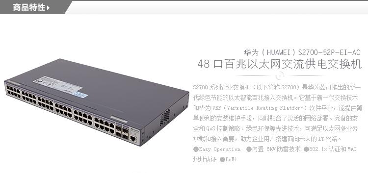 S2700系列 > 華為(huawei)S2700-52P-EI-AC (48個10/100Base-TX以太網(wǎng)端口,4個千兆SFP,交流電源